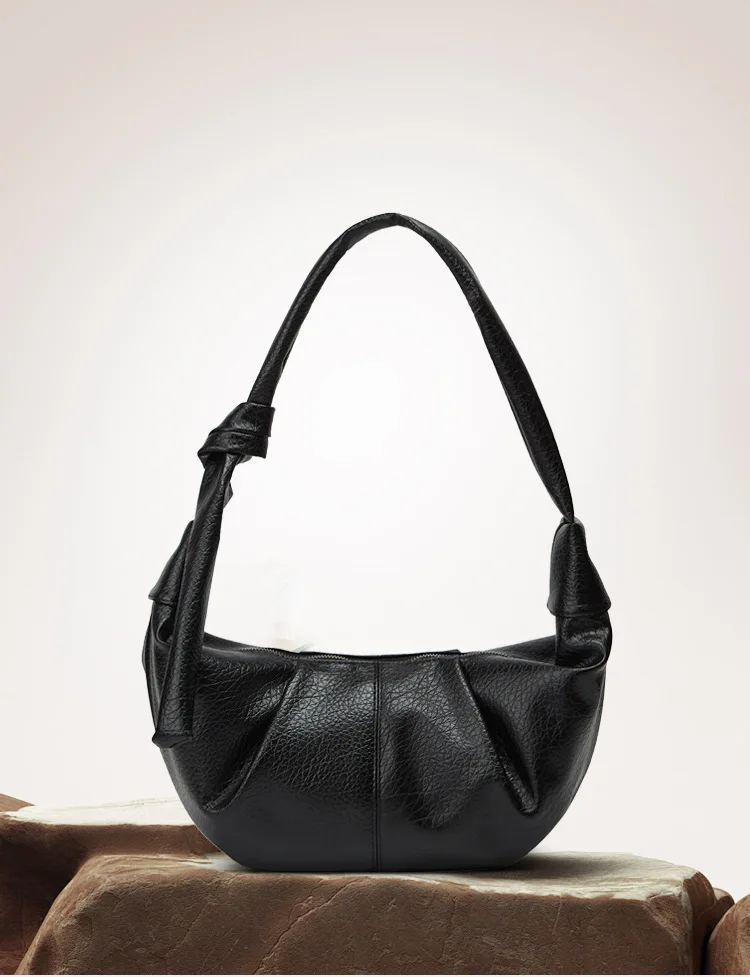With its dumpling shape and pleated style, this bag combines functionality with fashion, making it a trendy choice for daily wear.