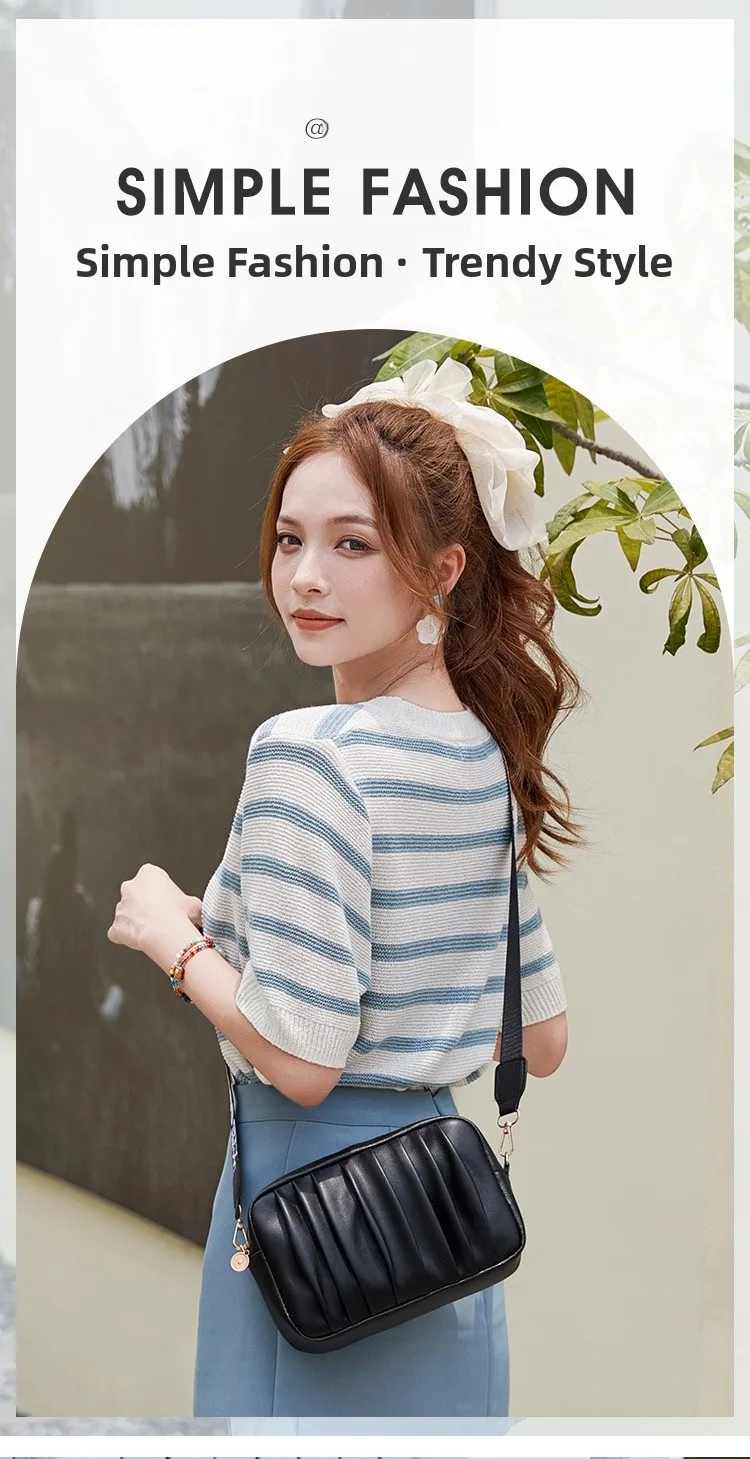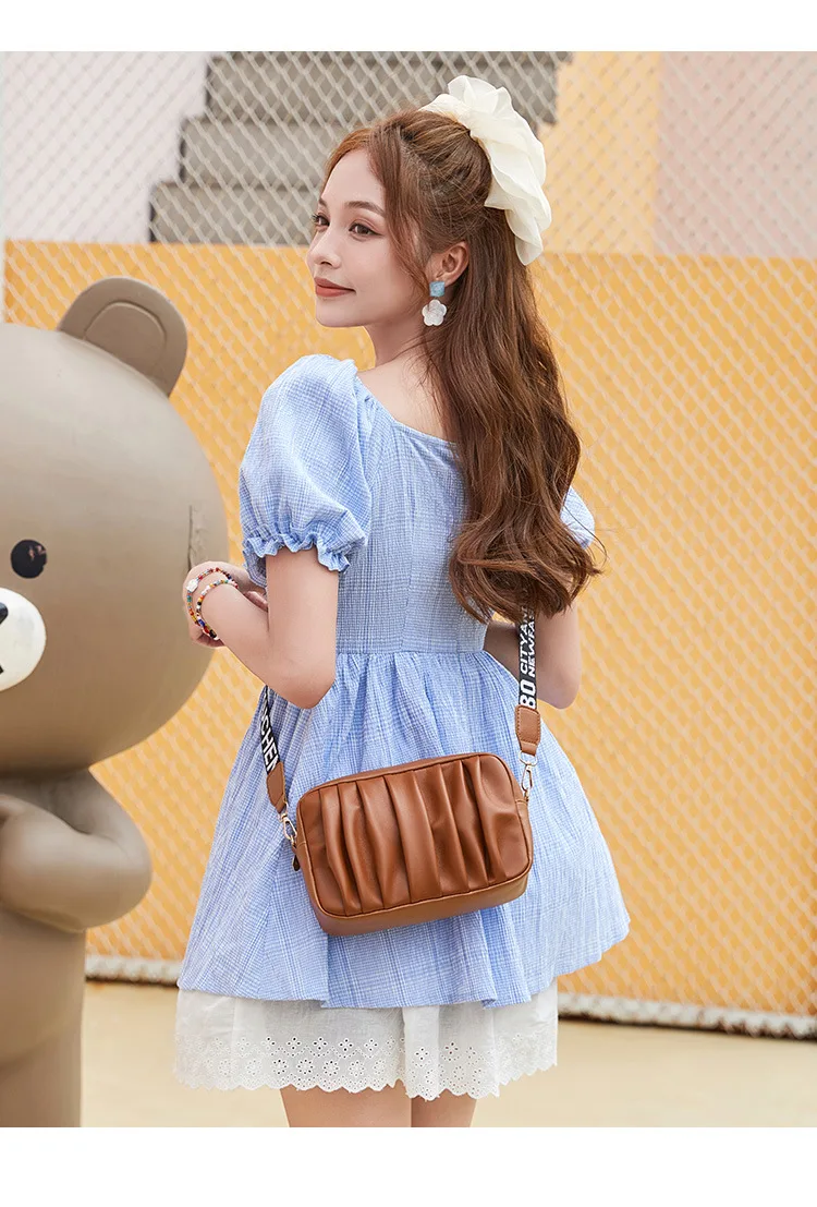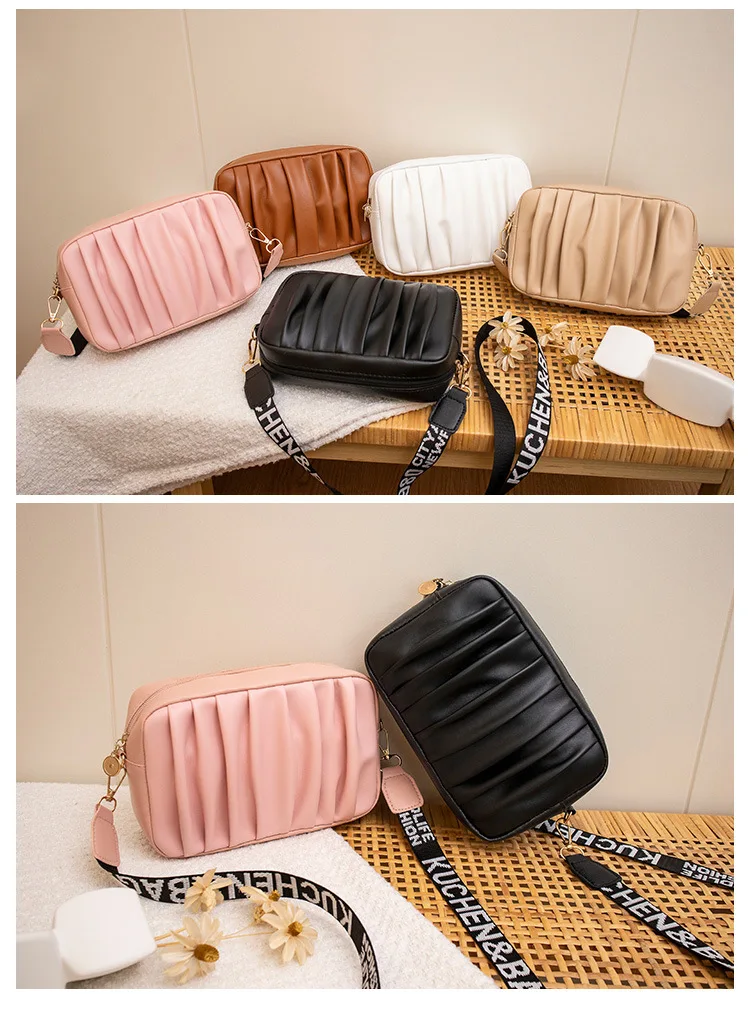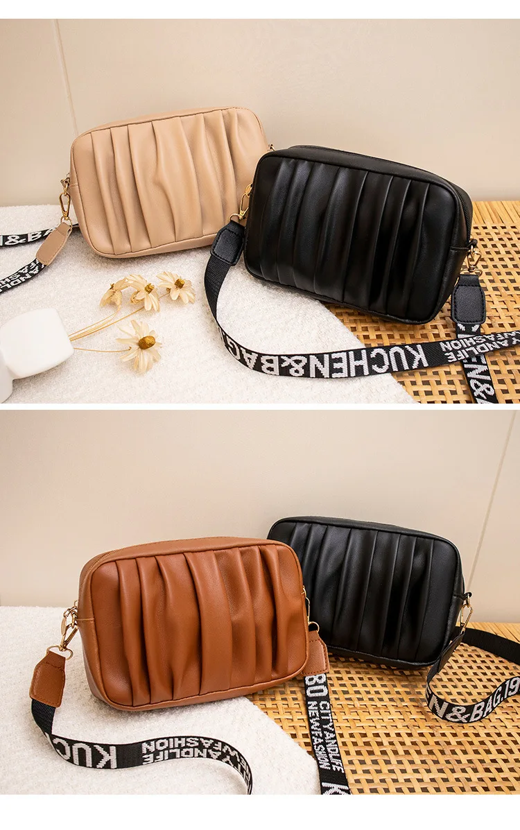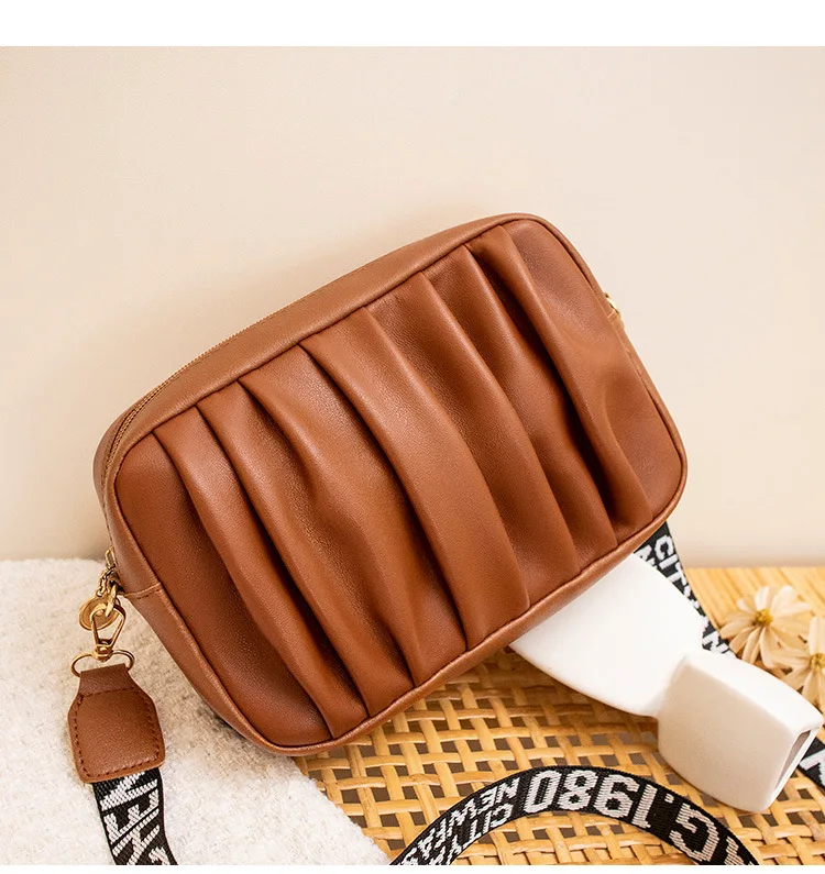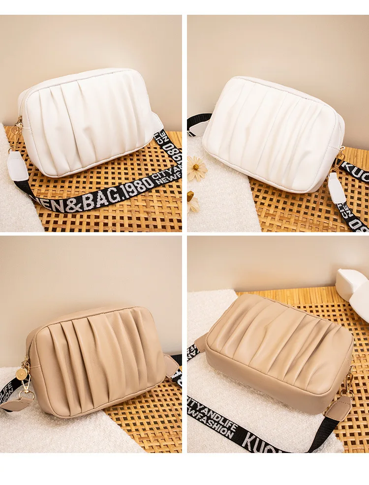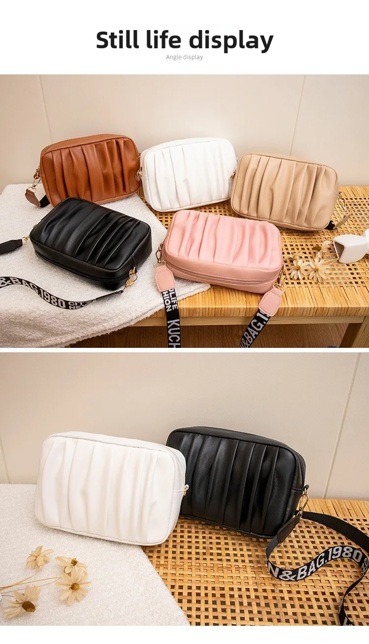 Pure Color Pleated Shoulder Bag Women's High Quality